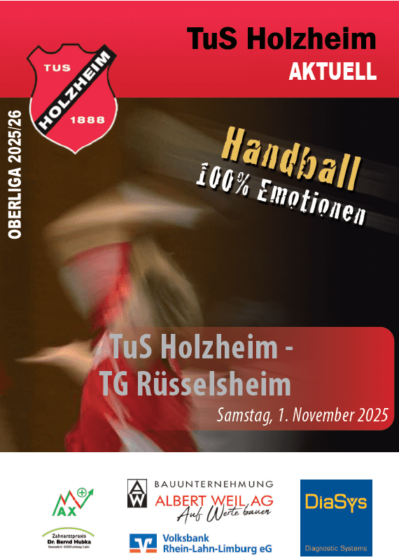 Die Handballsaison 2025/26 steht vor der Tür, am Samstag wird sie in der Halle des Diezer Sportzentrums begrüßt. Der TuS Holzheim lädt ab 17.15 Uhr zur großen Saisoneröffnungsfeier, bei der alle Mannschaften, die der TuS in den Spielbetrieb schickt, vorgestellt werden – von den Minis bis hin zur 1. Mannschaft.