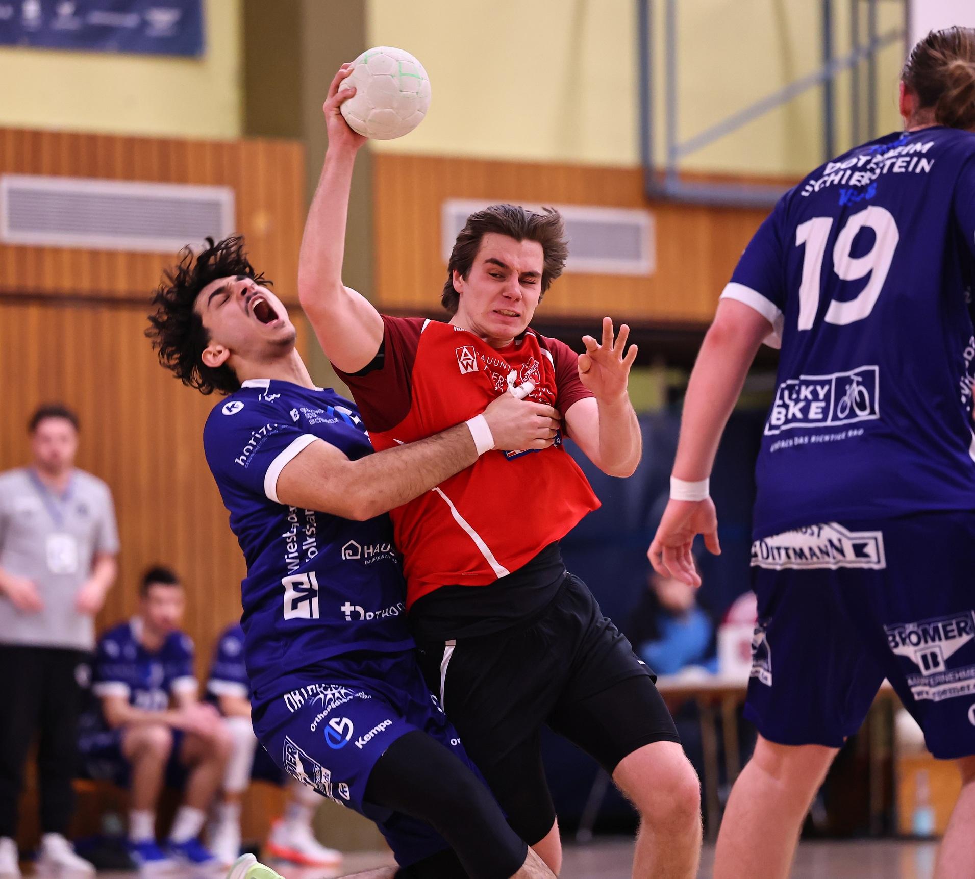 Mit zehn Toren Unterschied kanzelte das Oberliga-Mannschaft des TuS die HSG VfR/Eintracht Wiesbaden ab. Das Team von Dominik Jung bleibt oben dabei.