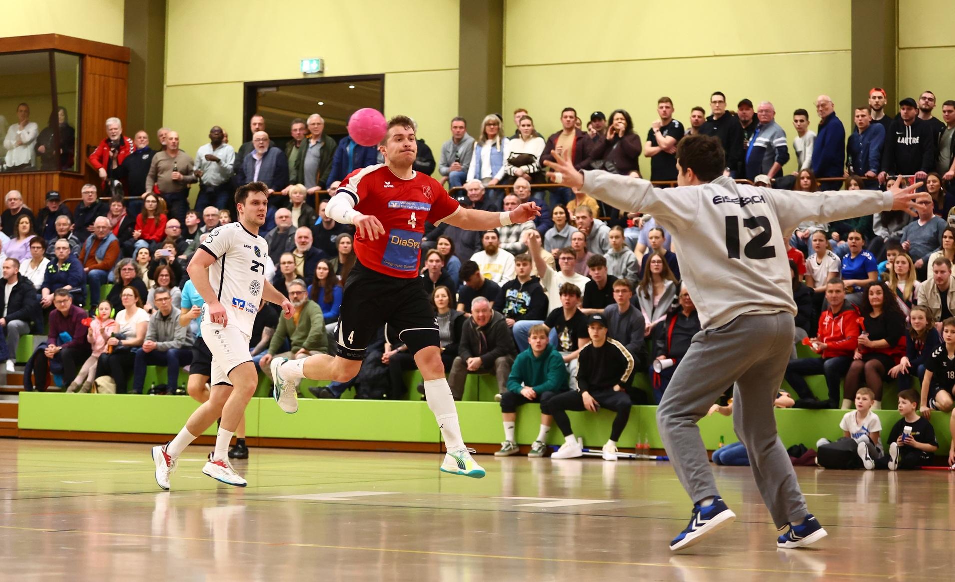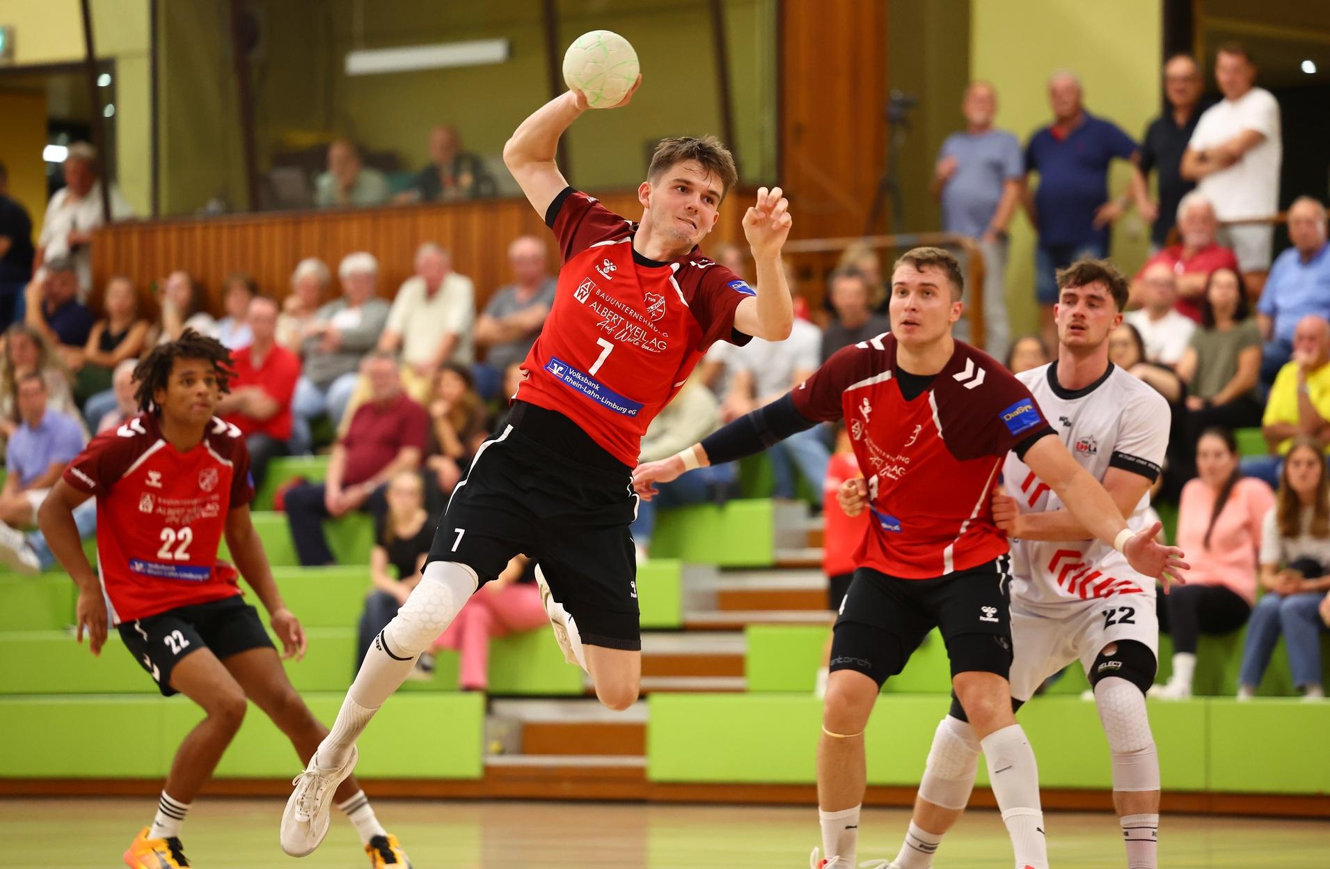 Mit zehn Toren Unterschied kanzelte das Oberliga-Mannschaft des TuS die HSG VfR/Eintracht Wiesbaden ab. Das Team von Dominik Jung bleibt oben dabei.