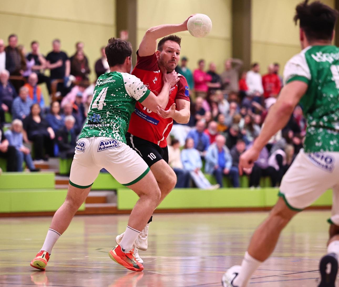 „Wir wussten, dass es schwer wird, hatten aber nichts zu verlieren haben und sind somit mit freiem Kopf in die Partie gegangen“, erklärte TuS-Trainer Johannes Schuster die Ausgangslage beim Tabellendritten. „Wir haben eine super Anfangsphase gespielt“, resümierte Schuster trotz der Niederlage zufrieden. Der Gastgeber verzichtete wie man’s teilweise aus dem Profibereich kennt auf einen Kreisläufer und stärkte somit den Rückraum mit einem vierten Mann. „Das habe ich so in der Bezirksoberliga auch noch nicht gesehen. Das hat Niederhofheim gut gemacht. Wir haben es stellenweise auch gut verteidigt“, führte Schuster seine Analyse fort. Felix Watkowiak war mit seiner Stärke im Eins-gegen-eins der auffälligste Spieler auf der Platte. „Wir haben ihn nicht in den Griff bekommen. Er konnte schalten und walten, wie er wollte“, ärgerte sich Schuster. Bis zum Zwischenstand von 14:11 machte die Schuster-Sieben einen ordentlichen Eindruck, ließ sich jedoch kurz vor Ende der ersten Hälfte etwas abkochen.